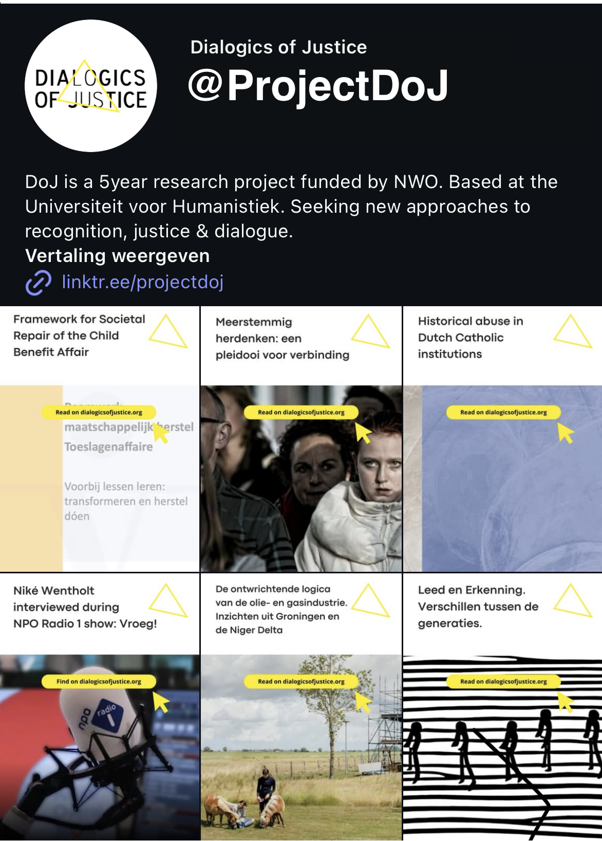 Dialogics of Justice is based at the University of Humanistic Studies in Utrecht and funded by a VICI-grant from the Dutch Research Council NWO.