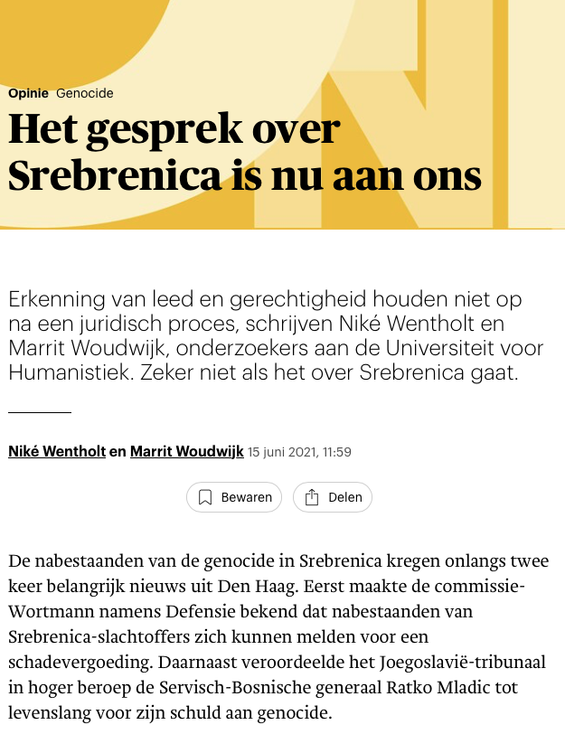 Read the full piece here: ‘Het gesprek over Srebrenica is nu aan ons’ – Trouw