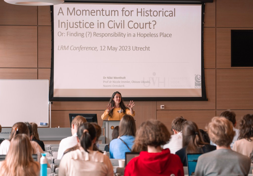 Niké Wentholt held the keynote on the 2023 Law Research Master Conference. Connecting the conference themes Responsibility: Past, Present, and Future, she argued that historical injustice cases ask us the same questions as cases of systemic injustice that emerge today. A dialogical approach to responsibility would thus mean to question how to restructure social relations in a way that is more fair and just. Students asked important questions about the role of courts and judges in this process.