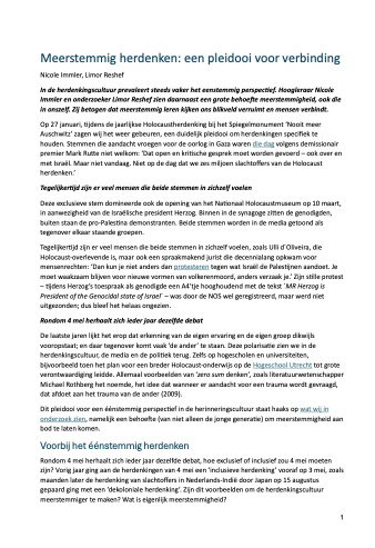 Translation: Multivoiced Commemoration: A Plea for Connection
