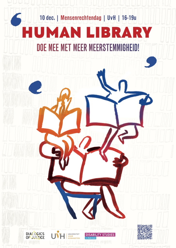 On December 10, 2024 we organized this event together with Disability Studies in Nederland at the University of Humanistic Studies. The Human Library offers a platform for people to share their unique, multivoiced stories about issues of injustice, recognition, and repair. The event took place on Human Rights Day. One week prior was the International Day of Persons with Disabilities.