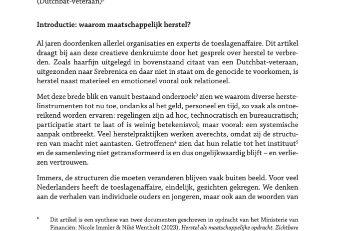 Herstel als maatschappelijke opdracht: zichtbare transformatie van relaties