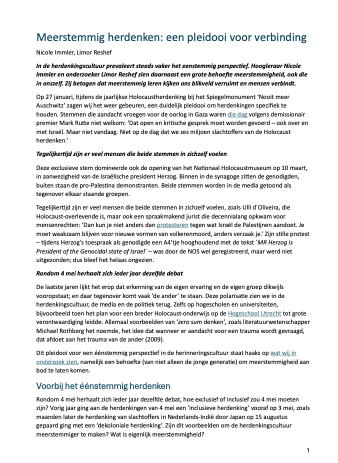 Nicole Immler wrote a chapter on Holocaust Reparations ‘Holocaust Reparations. Scrutinizing “the Model” in Transitional Justice’, in the book Redefining Reparations, Wassenaar 1952 and the Global Politics of Repair.